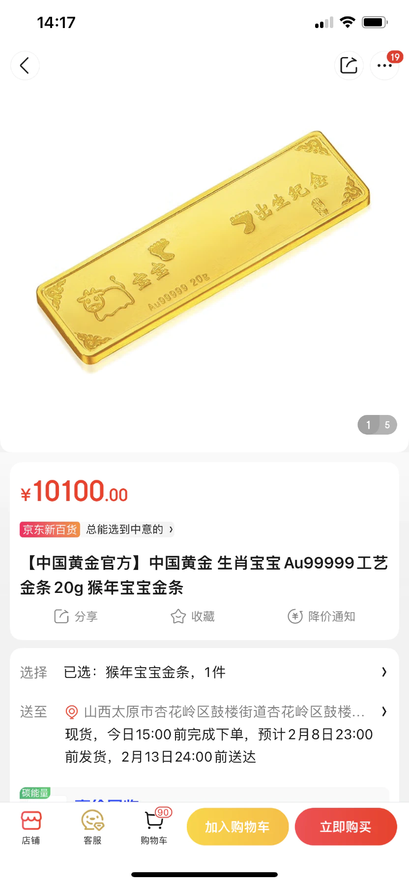 20 grams of 24K gold (I think it’s 24K) for 10’100 RMB? Not a very good deal if the current price of gold is about 408.11 RMB per gram (see Screenshot 2023-02-07 at 14.38.50.png)