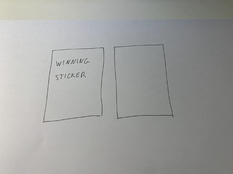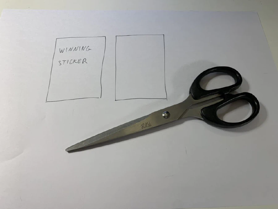 Then, on one of the sticker you just drew, write down “winning sticker” in it: